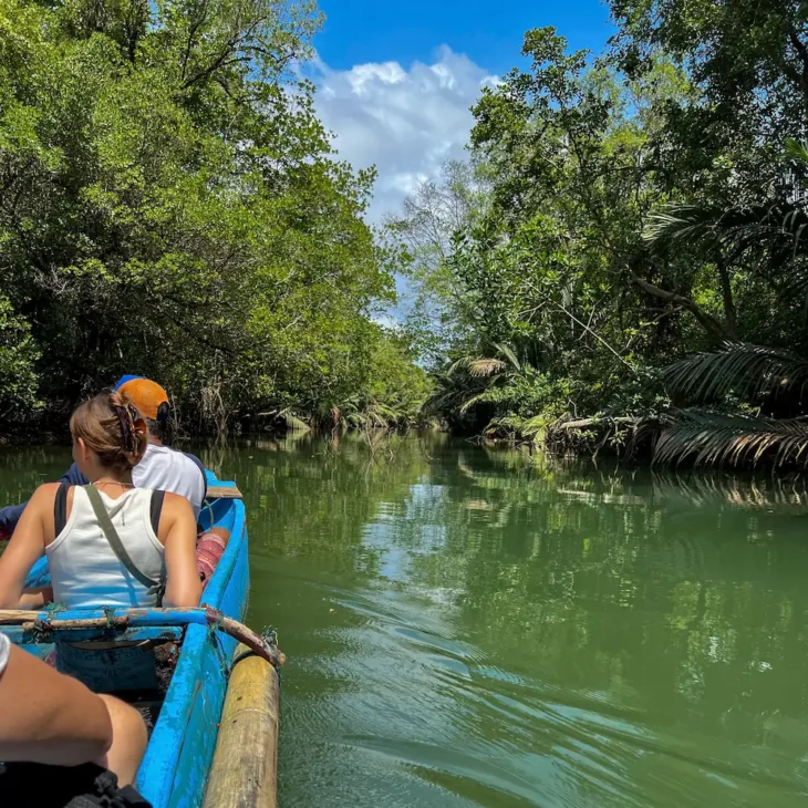 Los ging es also und wir fuhren zwei Stunden mit dem Boot in Richtung Nordosten des Ujung Kulon National Parks. Als wir ankamen, hüpften wir aus dem Boot und gingen an Land. Außer einem Sandstrand, einem Wald und einem kleinen Fluss gab es dort nicht mehr zu sehen, was es zu einem schönen, ruhigen Ort mitten im Nirgendwo machte. Weiter ging es auf ein kleines Kanu. Mit dem Kanu erkundeten wir für ca. zwei Stunden den Fluss, seine umliegende Natur und die Tierwelt.
